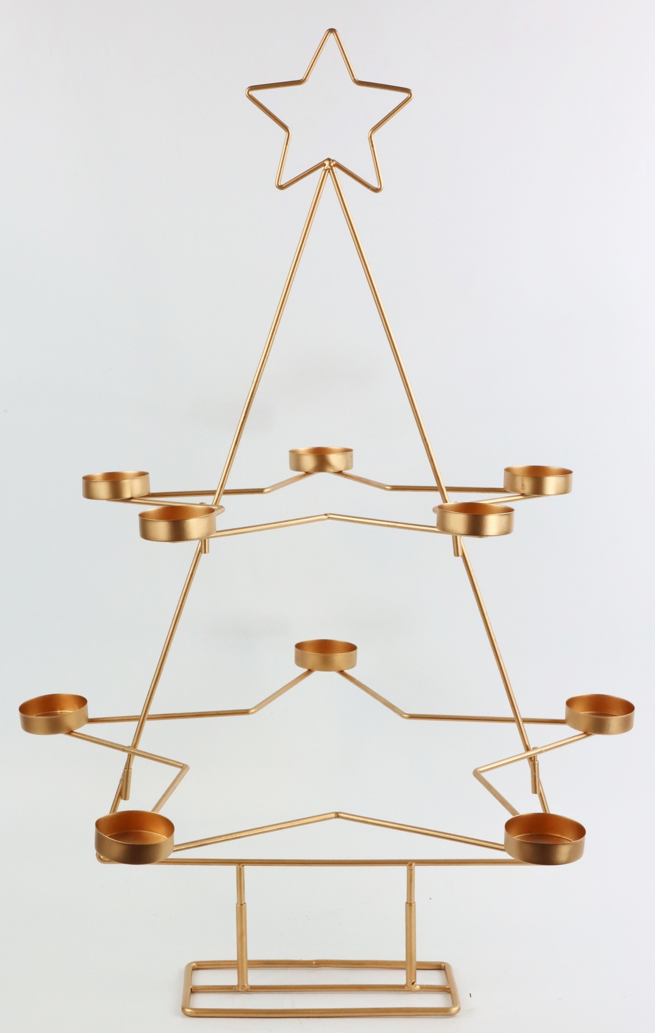Añade un toque de elegancia y calidez a tu decoración navideña con nuestro exclusivo portacandelitas "Árbol de estrellas". Este exquisito portacandelitas no sólo llama la atención en cualquier decoración festiva, sino que también es un accesorio maravilloso que crea un ambiente acogedor y festivo. Fabricado en metal de alta calidad y con una impresionante altura de aprox. 68 cm, el portacandelitas "Árbol de estrellas" es una elección perfecta tanto para minoristas como para clientes exigentes del sector del hogar y el estilo de vida.