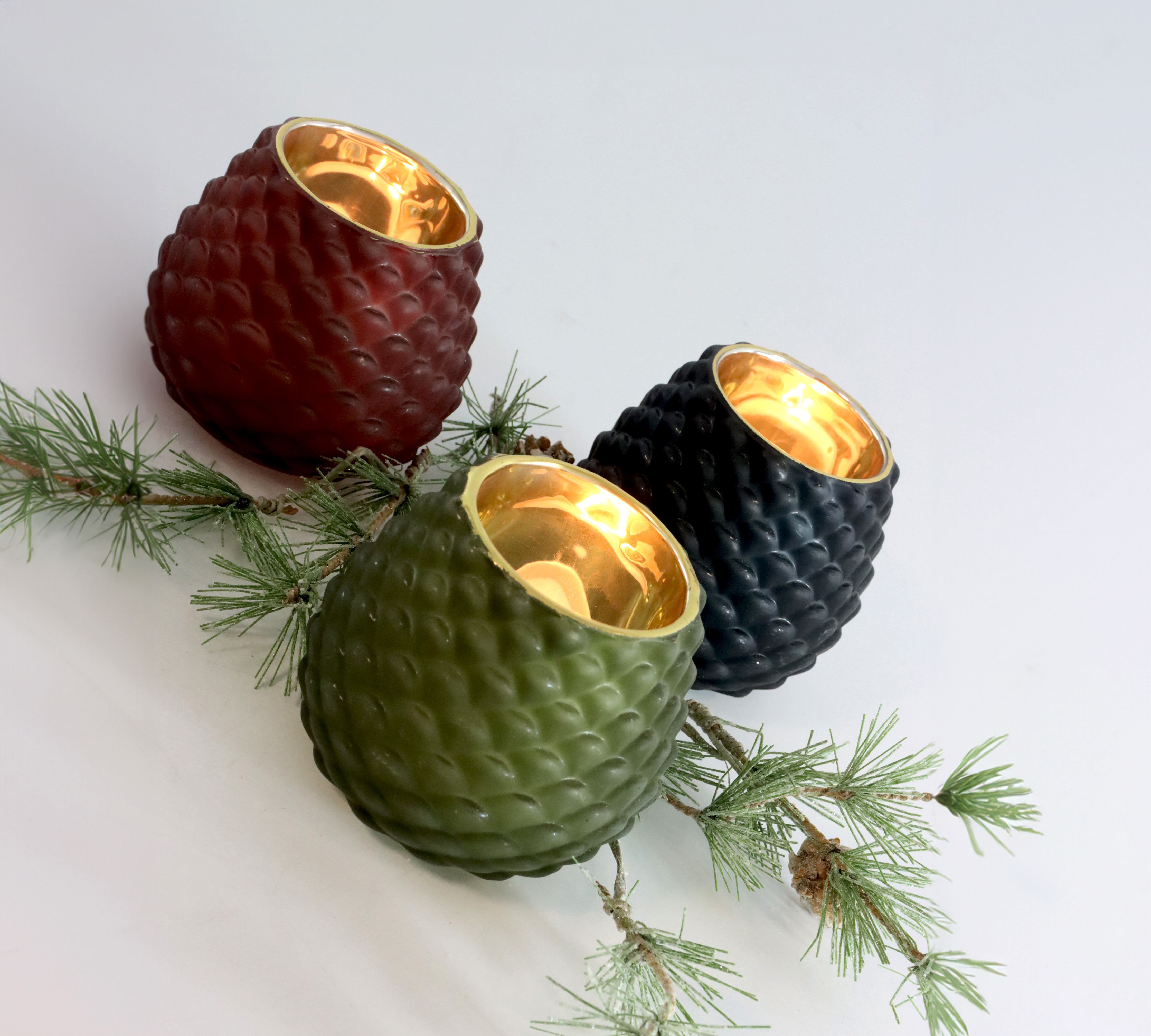 Sumérjase en el mundo atmosférico de la vida y cree un ambiente único para la temporada de otoño e invierno con las linternas "Miracle". Este extraordinario juego de tres piezas impresiona con su artístico diseño en forma de piña y evoca un cálido juego de luces en cualquier habitación. Los elegantes colores negro, rojo y verde confieren a estos farolillos de cristal un aspecto fascinante, moderno y atemporal a la vez, perfecto para añadir un toque de magia a su tienda.