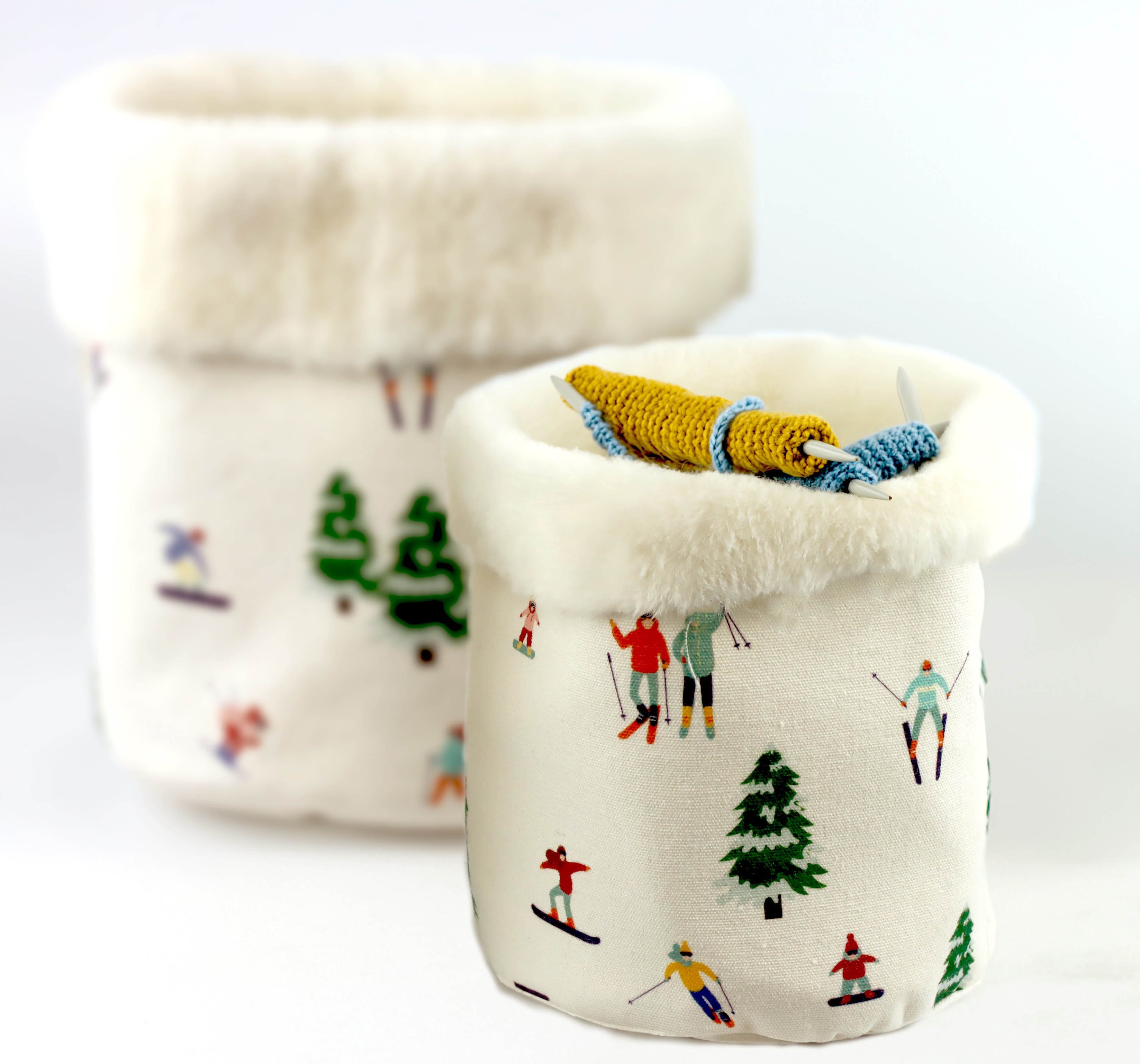 - Juego de dos cestas de tela decorativas con motivo de esquiador