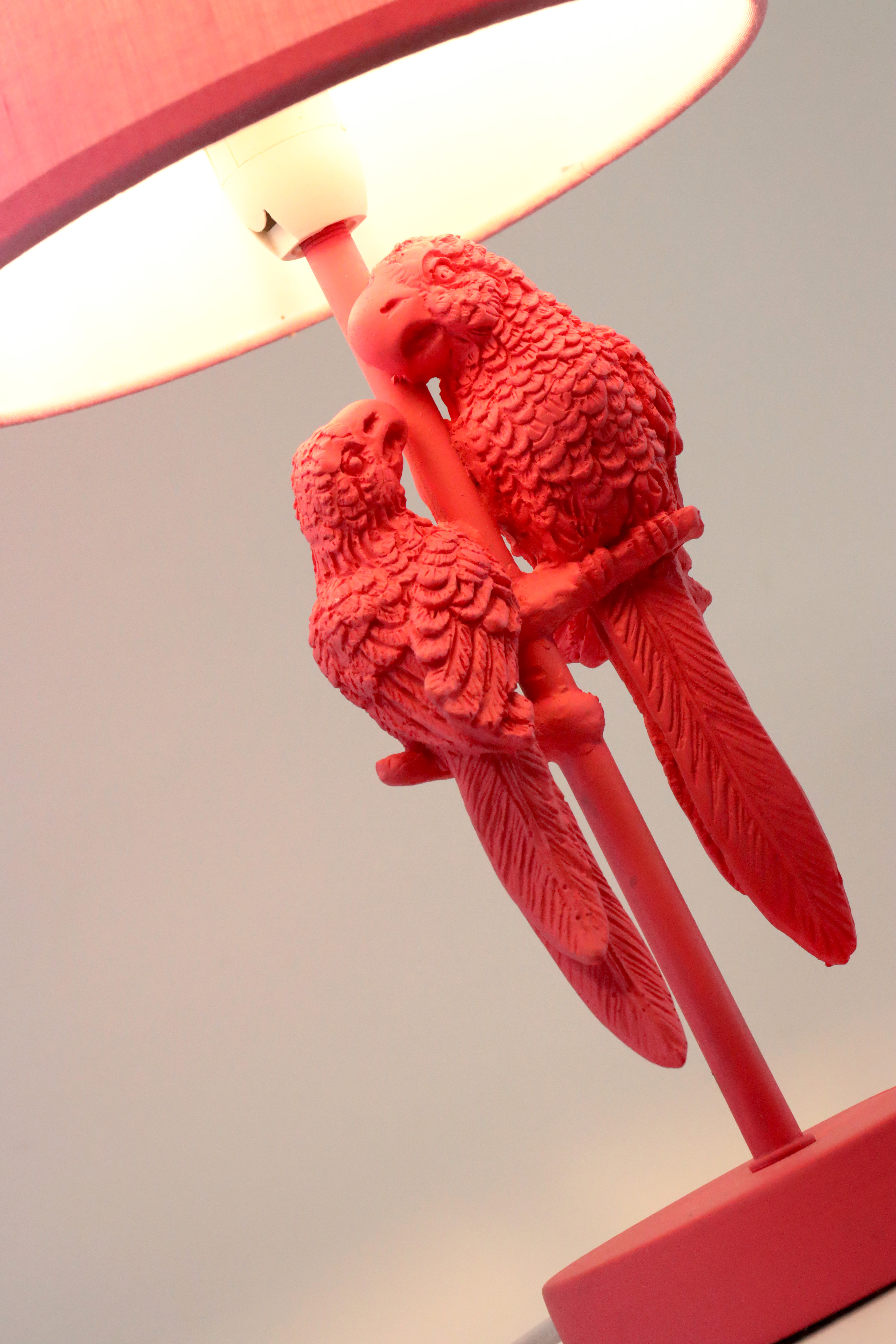 Realizzata con materiali di alta qualità come metallo, plastica e cotone, la lampada "BIRDY" riflette stabilità ed eleganza. Il colore rosso in combinazione con il design dettagliato del pappagallo attira l'attenzione di tutti e diventerà senza dubbio un punto di riferimento per i visitatori. Con un'altezza di circa 37 cm, è ideale come lampada da tavolo che fa bella figura sia su un tavolino che su una cassettiera.