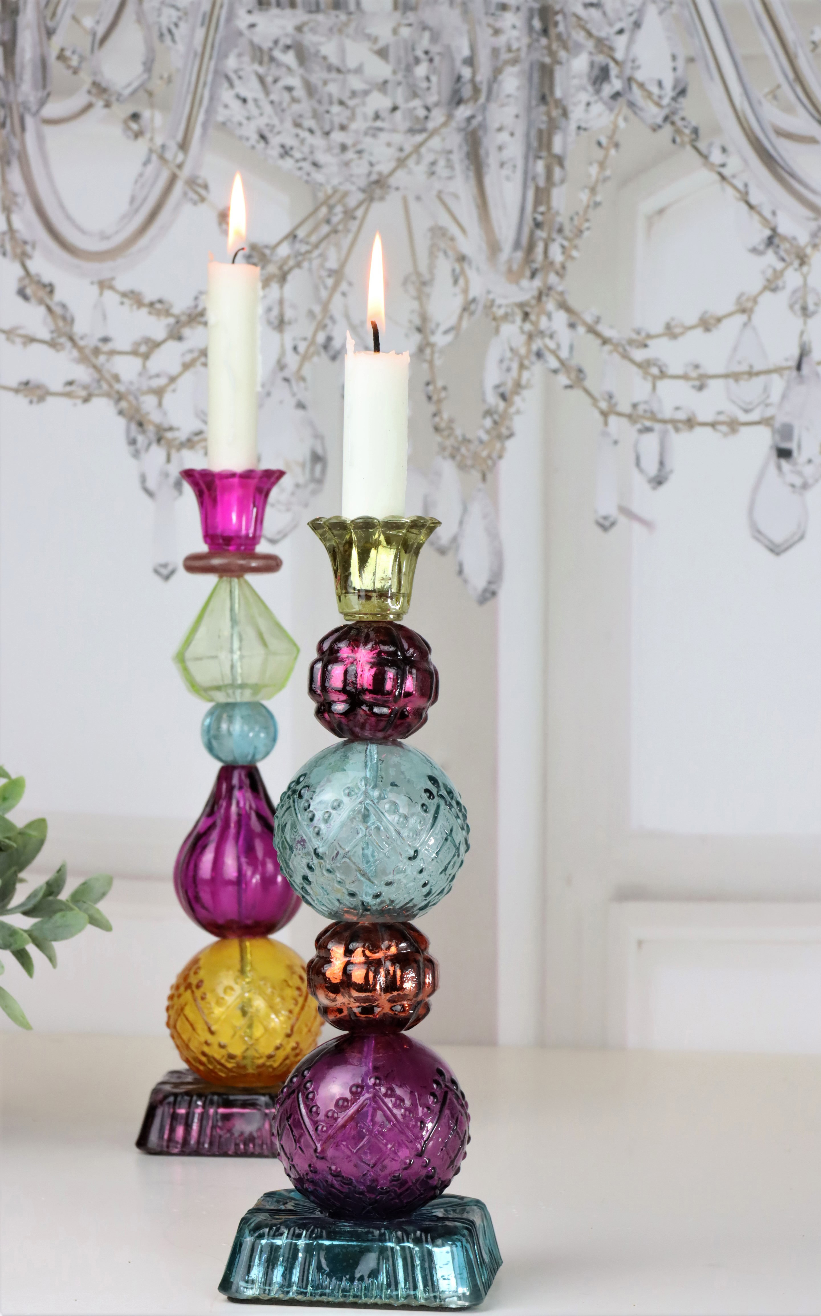 Fantastici per la stagione autunno/inverno, questi lampadari in vetro possono creare un'atmosfera meravigliosamente calda e accogliente in qualsiasi ambiente. Con altezze rispettivamente di 28 cm e 30,5 cm, possono essere montati con candele di diverse dimensioni e il loro design versatile permette di utilizzarli in numerosi stili di arredamento e illuminazione.