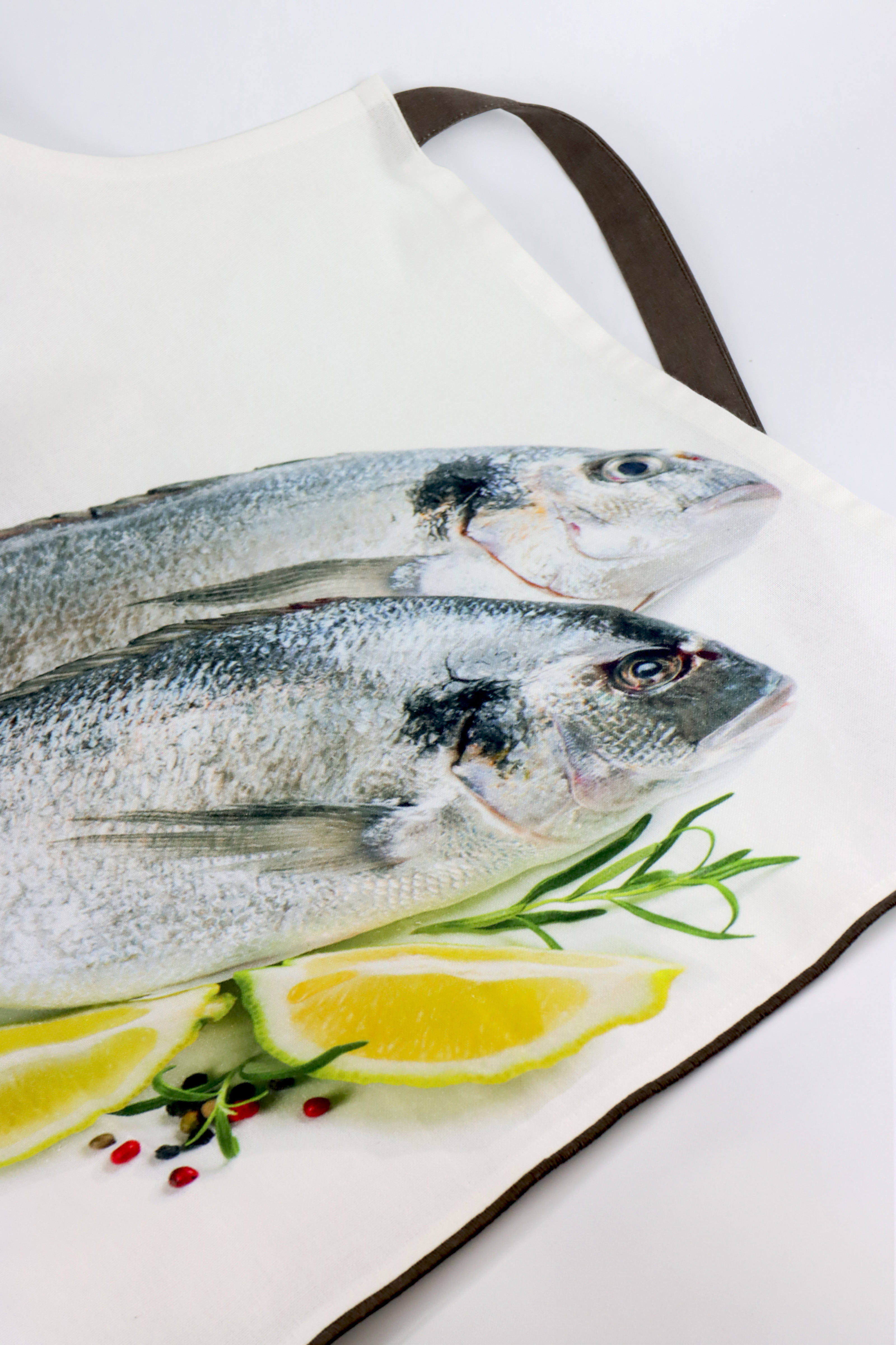 Il nostro grembiule è ottimizzato per termini SEO importanti come: "grembiule in cotone fantasia pesce", "grembiule per cucina e giardino", "grembiule collezione primavera/estate" e "tessile cucina moderna B2B trade".