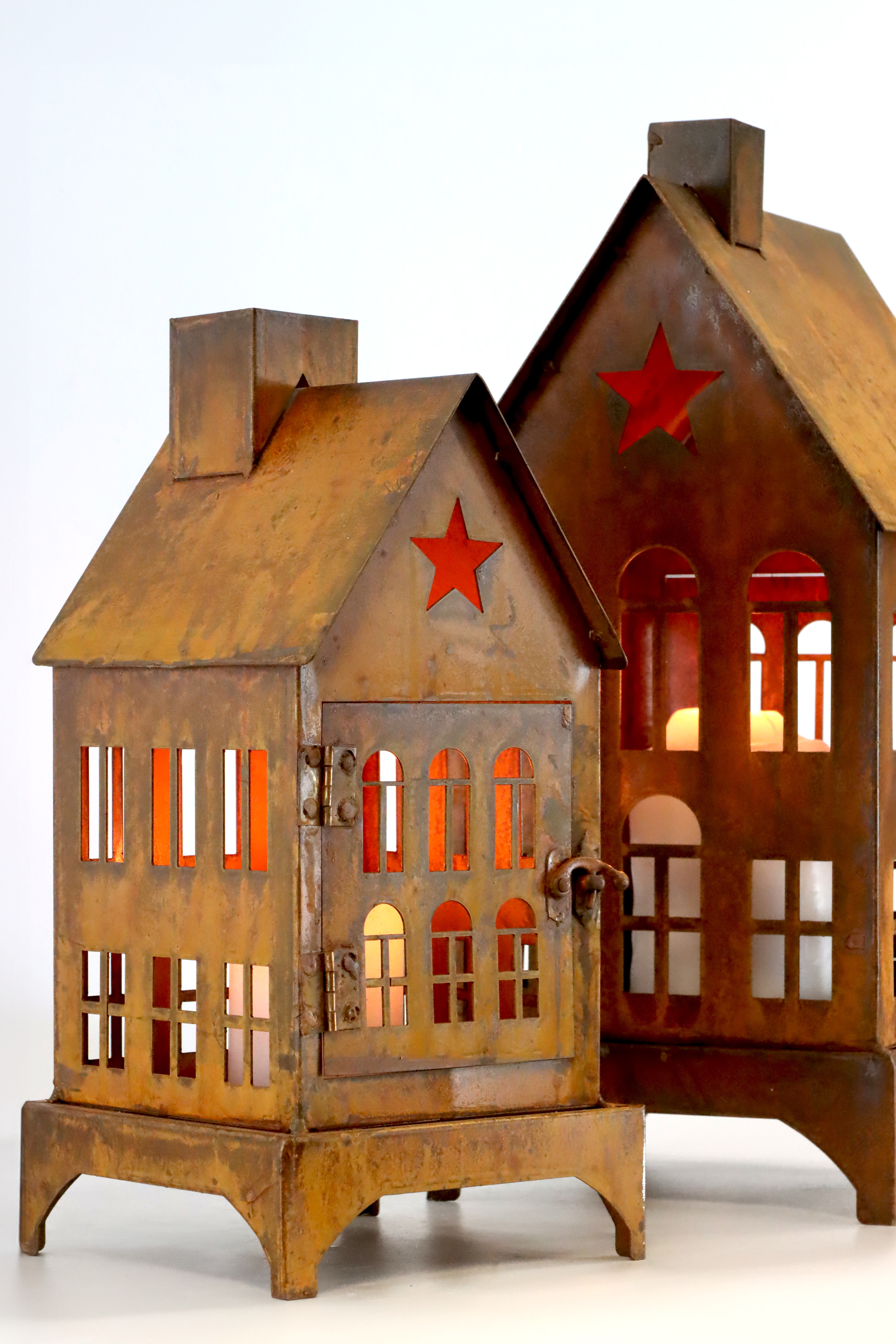 Le case-lanterna "LA VILLE" sono più che semplici oggetti decorativi. Sono un'espressione di stile, caratterizzata dalla struttura in ferro arrugginito. Un elemento di spicco che le rende un richiamo visivo in qualsiasi ambiente. Le loro dimensioni generose di circa 63 cm aggiungono eleganza e fascino a qualsiasi ambiente. Il suo semplice colore ruggine si armonizza con una varietà di sfondi e palette di colori e crea un'atmosfera calda e invitante, ideale per i mesi autunnali e invernali più freddi.